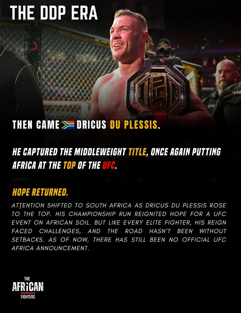 From 2019 to 2022, African MMA reached a historic peak. Israel Adesanya, Kamaru Usman, and Francis Ngannou held UFC titles at the same time, creating an unprecedented moment of African dominance in the sport. That championship run created strong global momentum and intensified calls for a UFC event on the continent.